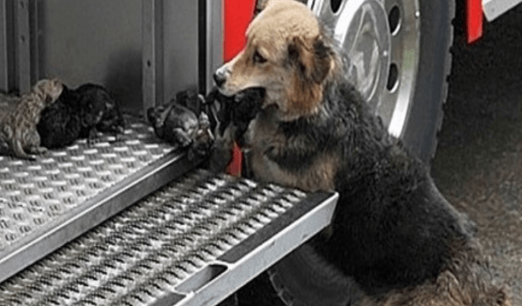 Heroic Mother Dog Went Through A Fire Several Times To Rescue Her Puppies