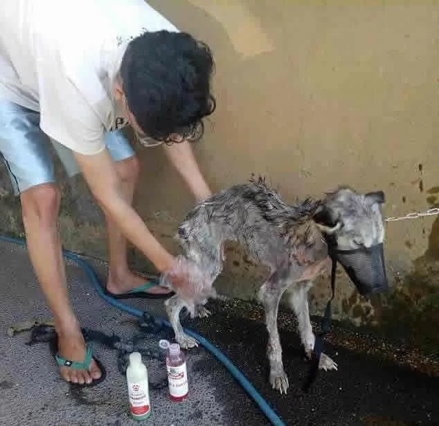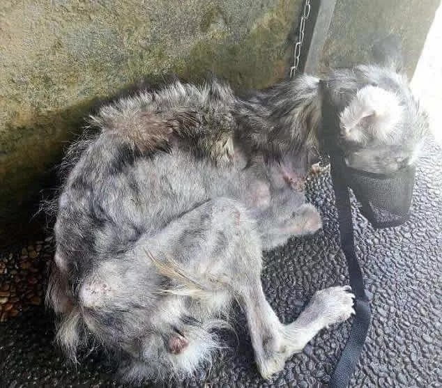 The animal was wandering the streets of Denpasar, Bali with bald patches on its mangy coat thereby revealing exposed sores. He was so malnourished that he looked “skeletal”. He could barely hold himself up, and he had long, dirty nails that had not been trimmed for at least months.