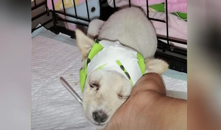 The vets took the pup, who was named Nuan, to the clinic to treat her. She was directly given pain medication and IV fluids, and her wound was bandaged up. Thankfully, the dog started getting better and his wound in the head began to heal.