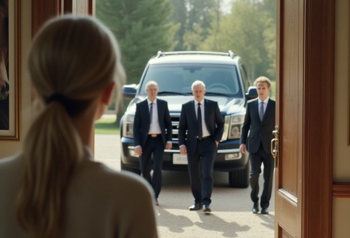 Before I could move closer, the crunch of tires outside broke the silence. I looked out the window. A black SUV had pulled up, and three men stepped out.