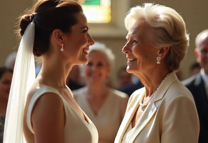 We stood there for a while, listening to the laughter and music drifting from the ballroom. Then she touched the lace sleeve of my dress, her eyes glimmering. “Three generations,” she whispered. “Maybe someday, it will be four.”