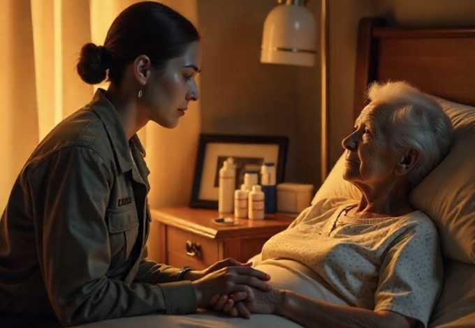 I dropped my duffel bag and went to the kitchen. There was a dirty plate in the sink, a glass half full of cloudy water, and an open pill bottle on the counter. My chest tightened. Then I heard it — a faint cough coming from down the hallway.