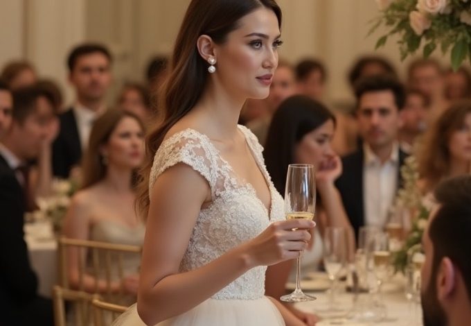 During the toasts, Brooke lifted her glass, shining, glowing, the chandelier light turning her dress into a constellation. “To everyone who made today beautiful,” she said. “You know who you are, and you’re sitting right here in front of me!” Laughter. Cheers. I was three tables back, watching two groomsmen whisper about the DJ.