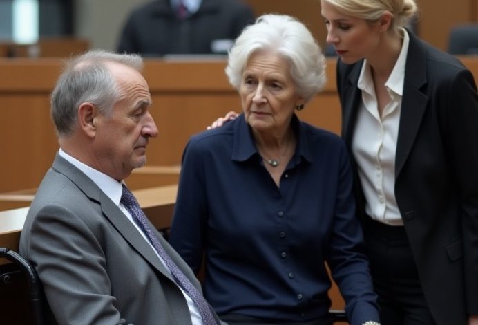 The air inside the courtroom was heavy, thick with tension and the faint scent of polished wood. My daughter-in-law, Jessica, sat at the defendant’s bench, legs crossed, her bright red heels tapping rhythmically against the floor. Tap. Tap. Tap. Each sound echoed like a small act of defiance. When my son, Michael, entered on his crutches, she leaned toward her mother and whispered, loud enough for the first few rows to hear, “Look at him. He can’t even stand up. How can a man like that raise a child?”