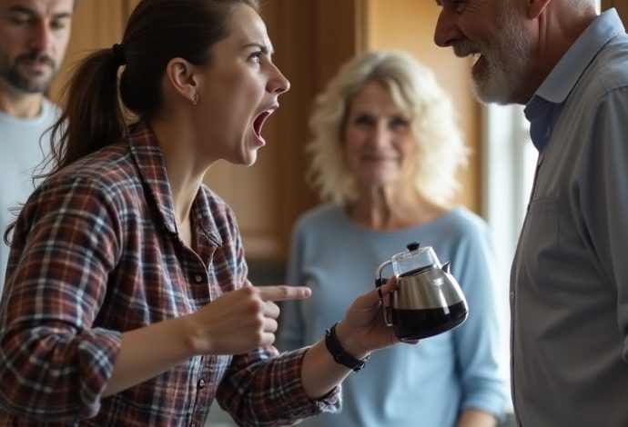 The boiling liquid hit my chest with a burning shock. The pain was blinding, instant. I stumbled back, gasping, clutching at my soaked shirt as the heat tore through my skin. I could smell coffee, burnt fabric — and my own flesh.