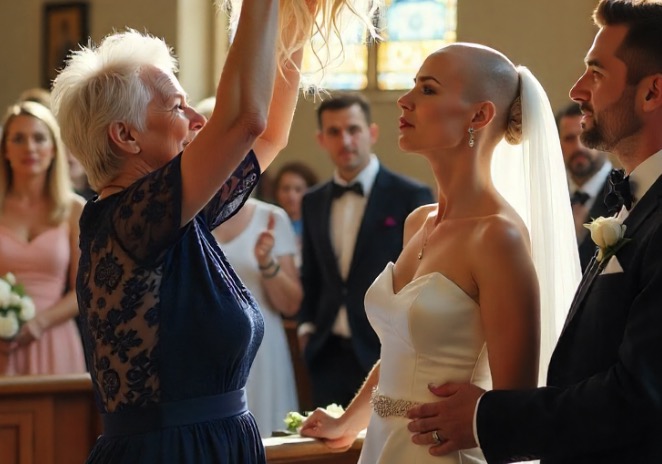 “Now everyone can see the liar he’s marrying!” my mother-in-law screamed, grabbing my wig and tearing it off right there at the altar.