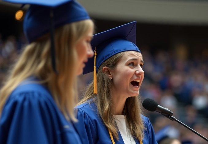 When graduation day came, the gymnasium was filled with families and bright blue gowns. The air buzzed with chatter and laughter, the excitement of endings and beginnings. Emma’s cap sat slightly crooked on her head, her hands trembling around her speech. She had been named valedictorian — the top student in her class.