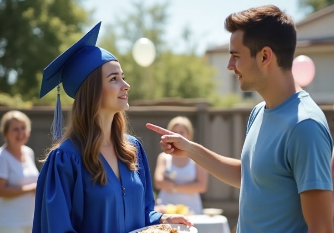 My sister’s son, Liam, had just pushed my graduation cake off the table. It hit the patio with a wet splatter, frosting and candles scattering everywhere. Everyone at the table gasped for a moment, then burst into laughter.