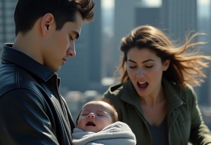 My husband, Silas, was standing on the balcony, holding our eight-month-old son, Rowan, upside down by one ankle. His tiny body dangled over the edge of the third-floor railing, his cries sharp and desperate.