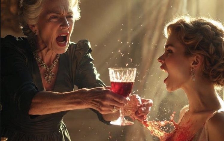 She stood abruptly, lifting her glass of red wine as if it were a weapon. Then she began walking toward me slowly, almost circling like a predator that had waited long enough.