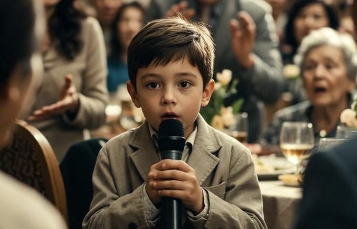 Then my eight-year-old son stood up, walked calmly to the microphone, and said, “I brought a gift for the bride. Actually… she is…”