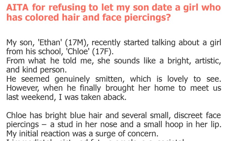 "AITA for refusing to let my son date a girl who has colored hair and face piercings?"