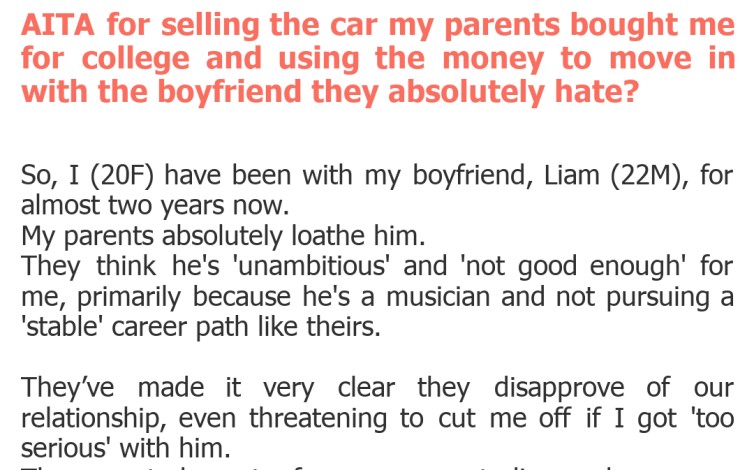 "AITA for selling the car my parents bought me for college and using the money to move in with the boyfriend they absolutely hate?"