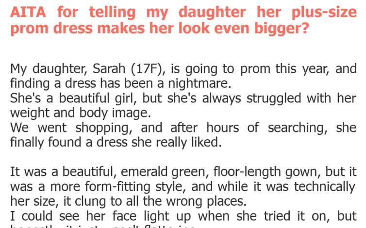 "AITA for telling my daughter her plus-size prom dress makes her look even bigger?"