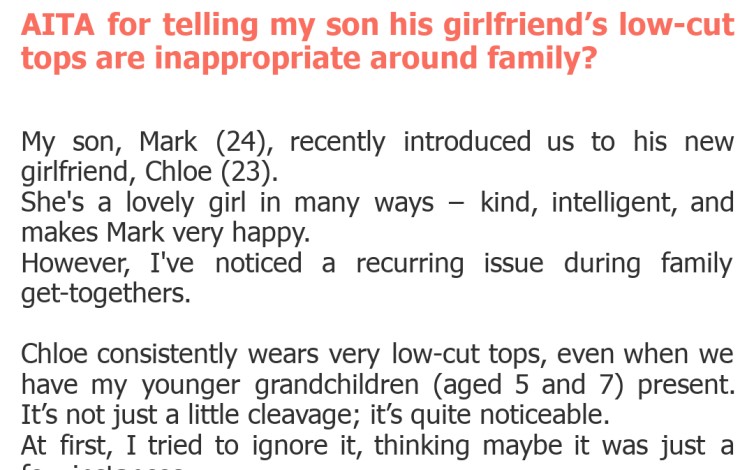 "AITA for telling my son his girlfriend’s low-cut tops are inappropriate around family?"
