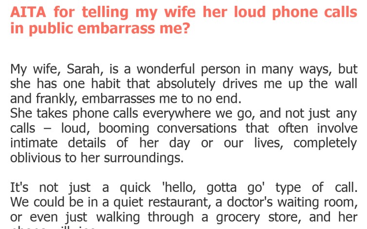 "AITA for telling my wife her loud phone calls in public embarrass me?"