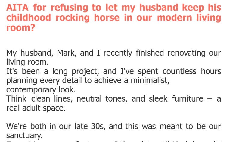 "AITA for refusing to let my husband keep his childhood rocking horse in our modern living room?"