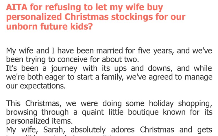 "AITA for refusing to let my wife buy personalized Christmas stockings for our unborn future kids?"
