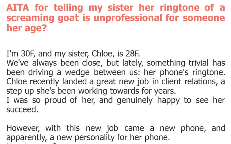 "AITA for telling my sister her ringtone of a screaming goat is unprofessional for someone her age?"