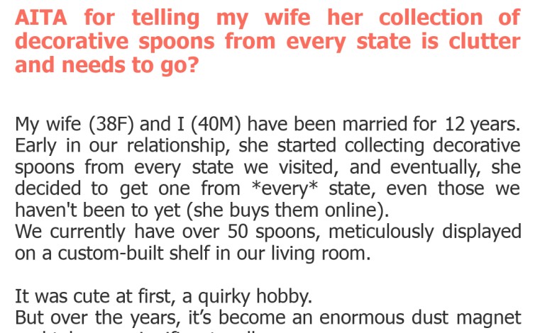 "AITA for telling my wife her collection of decorative spoons from every state is clutter and needs to go?"