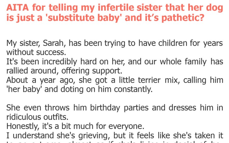 "AITA for telling my infertile sister that her dog is just a 'substitute baby' and it’s pathetic?"