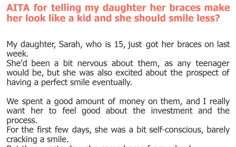 "AITA for telling my daughter her braces make her look like a kid and she should smile less?"