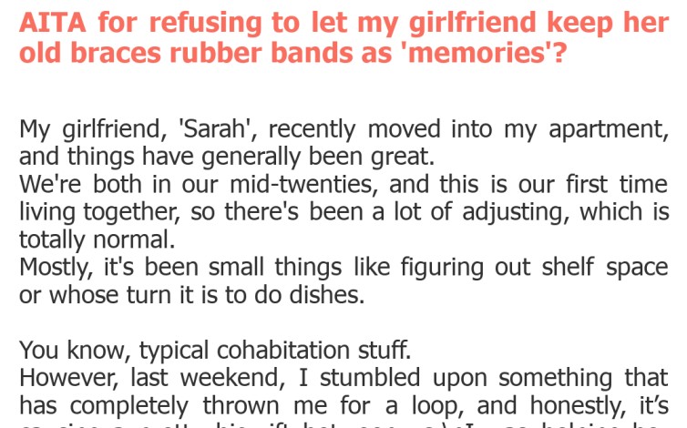 "AITA for refusing to let my girlfriend keep her old braces rubber bands as 'memories'?"