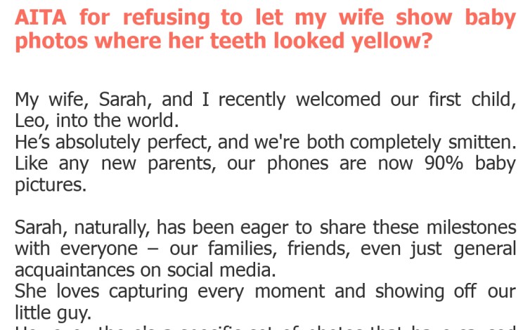 "AITA for refusing to let my wife show baby photos where her teeth looked yellow?"
