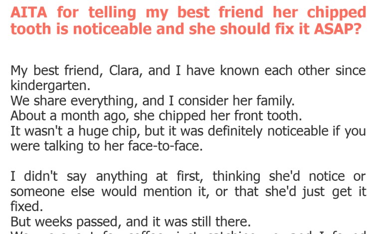 "AITA for telling my best friend her chipped tooth is noticeable and she should fix it ASAP?"