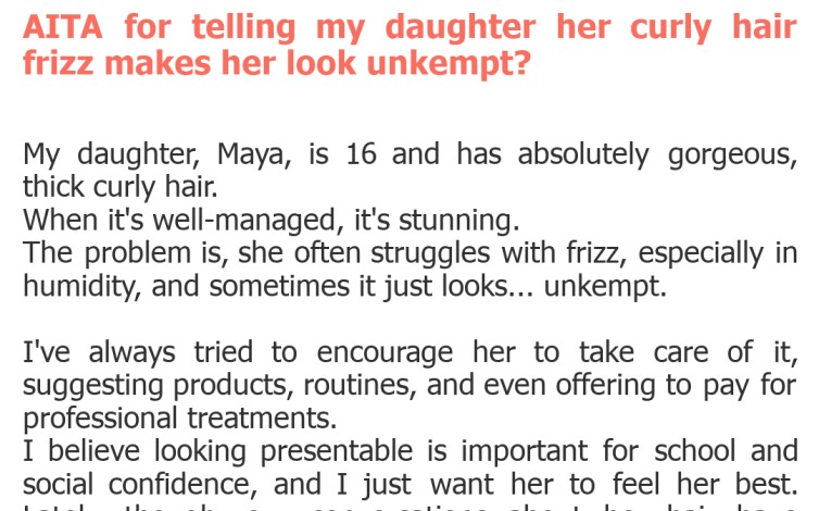 "AITA for telling my daughter her curly hair frizz makes her look unkempt?"