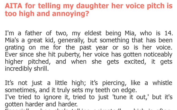 "AITA for telling my daughter her voice pitch is too high and annoying?"