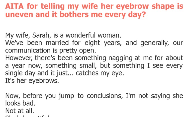 "AITA for telling my wife her eyebrow shape is uneven and it bothers me every day?"