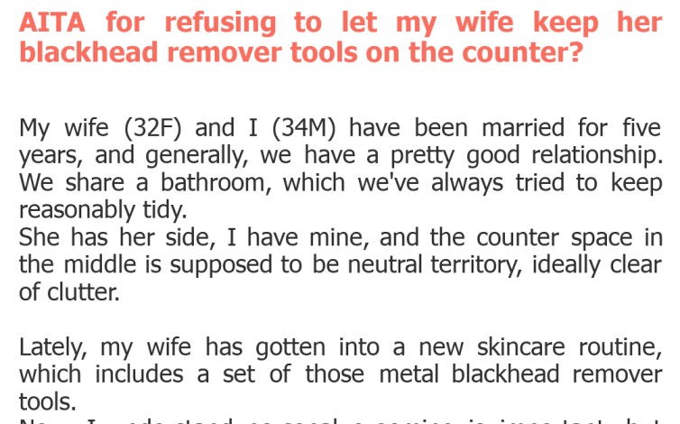 "AITA for refusing to let my wife keep her blackhead remover tools on the counter?"