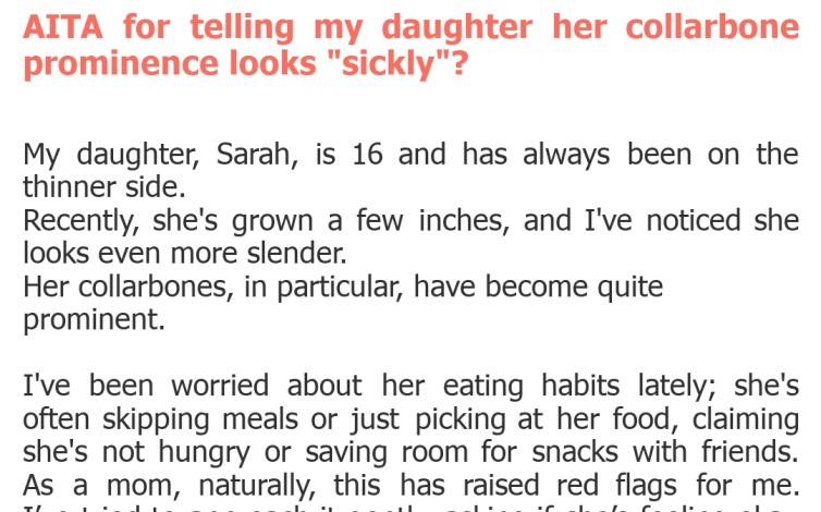 "AITA for telling my daughter her collarbone prominence looks "sickly"?"