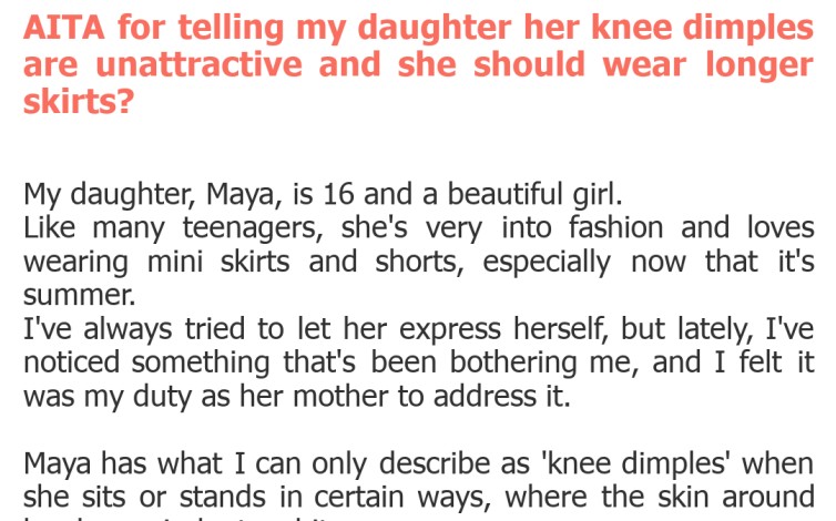 "AITA for telling my daughter her knee dimples are unattractive and she should wear longer skirts?"