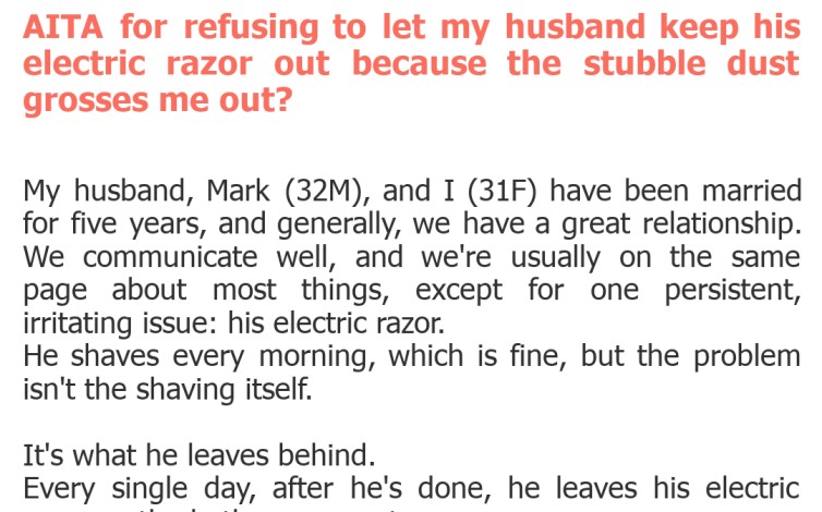 This AITA story is a perfect example of how small irritations can fester into larger conflicts when left unaddressed, or when one partner feels unheard. While the stubble dust itself might seem trivial to some, for the OP, it represents a breach of cleanliness and respect. The key takeaway here is the absolute necessity of open, respectful communication and a willingness to compromise. Finding a solution that works for both partners – whether it's a dedicated storage spot, a quick wipe-down habit, or a different razor type – is crucial for domestic harmony. Let's hope this couple can find their clean-counter common ground!