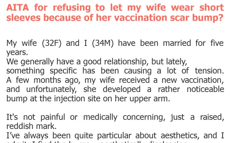 "AITA for refusing to let my wife wear short sleeves because of her vaccination scar bump?"