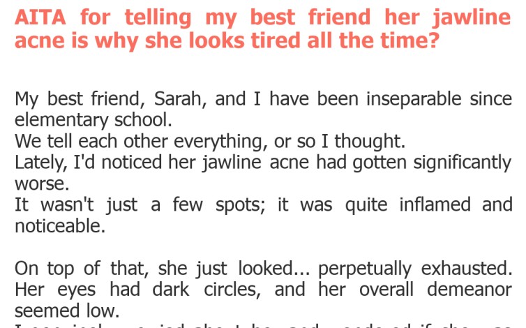 "AITA for telling my best friend her jawline acne is why she looks tired all the time?"