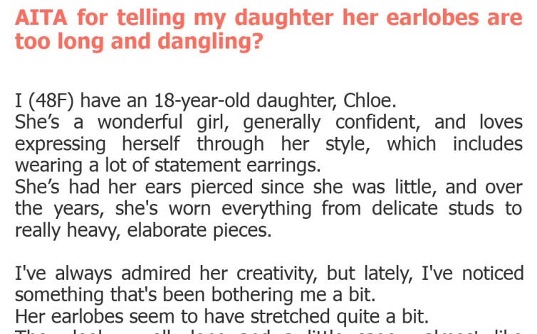 "AITA for telling my daughter her earlobes are too long and dangling?"