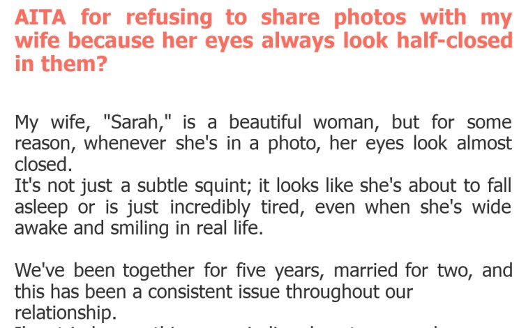 "AITA for refusing to share photos with my wife because her eyes always look half-closed in them?"