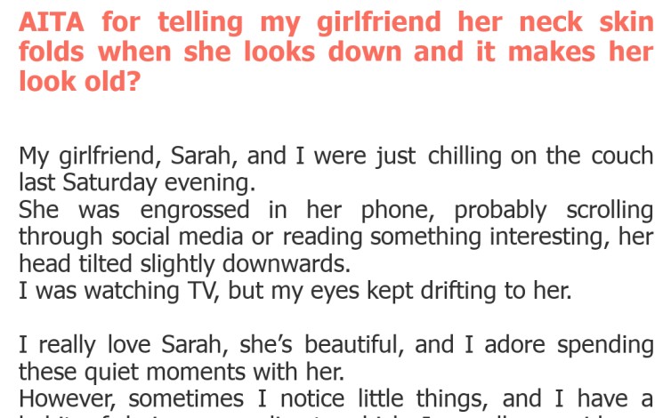 "AITA for telling my girlfriend her neck skin folds when she looks down and it makes her look old?"
