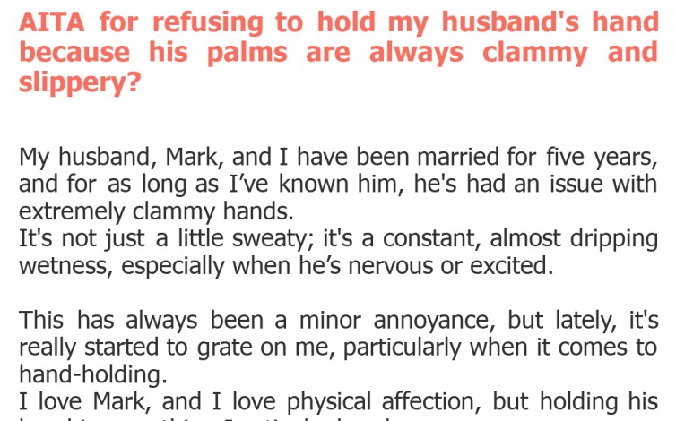 AITA for refusing to hold my husband’s hand because his palms are always clammy and slippery?