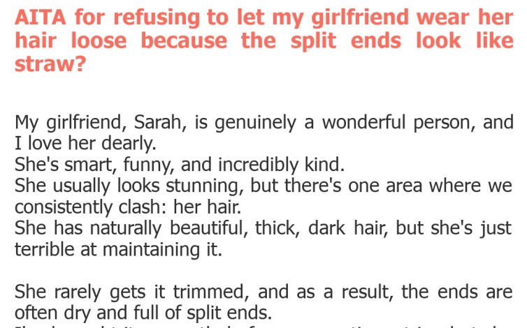 "AITA for refusing to let my girlfriend wear her hair loose because the split ends look like straw?"