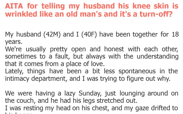 "AITA for telling my husband his knee skin is wrinkled like an old man's and it's a turn-off?"