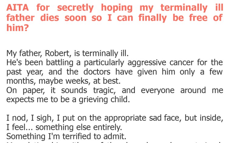 "AITA for secretly hoping my terminally ill father dies soon so I can finally be free of him?"