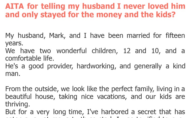 "AITA for telling my husband I never loved him and only stayed for the money and the kids?"