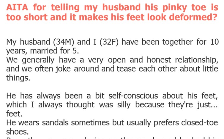 "AITA for telling my husband his pinky toe is too short and it makes his feet look deformed?"