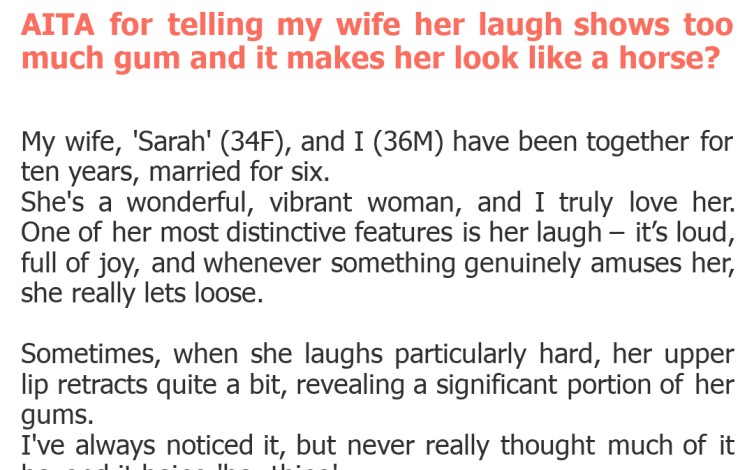 "AITA for telling my wife her laugh shows too much gum and it makes her look like a horse?"