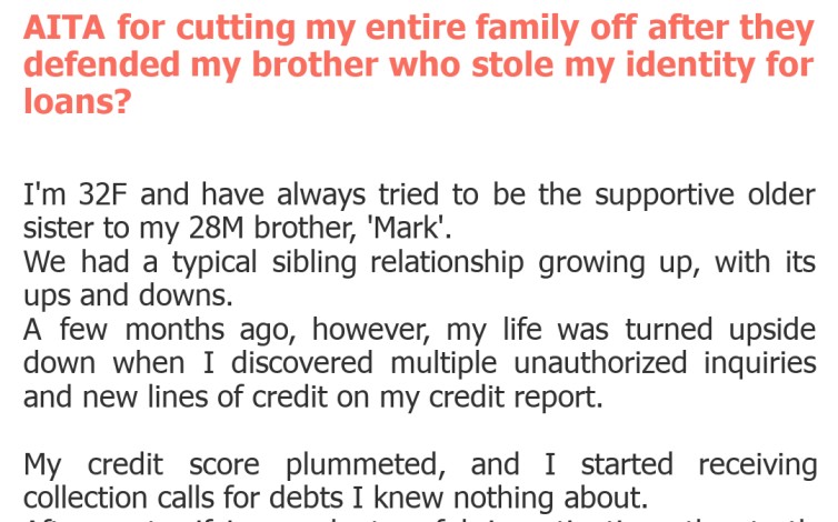 "AITA for cutting my entire family off after they defended my brother who stole my identity for loans?"