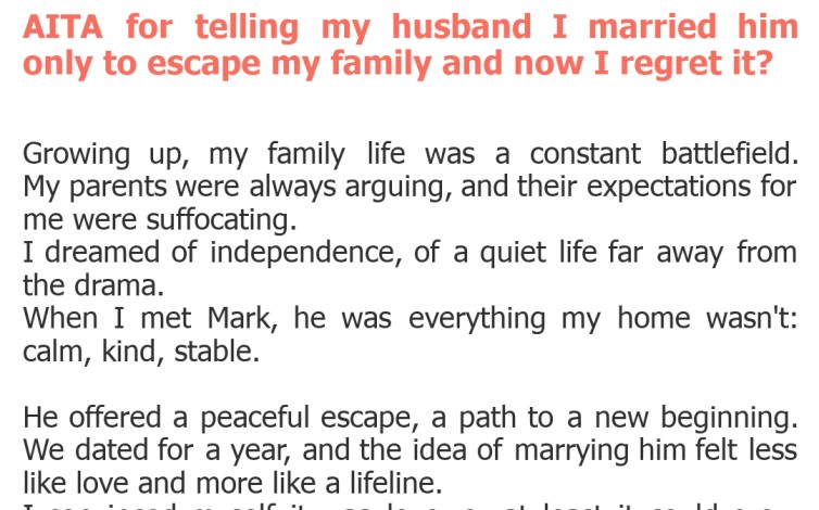 "AITA for telling my husband I married him only to escape my family and now I regret it?"